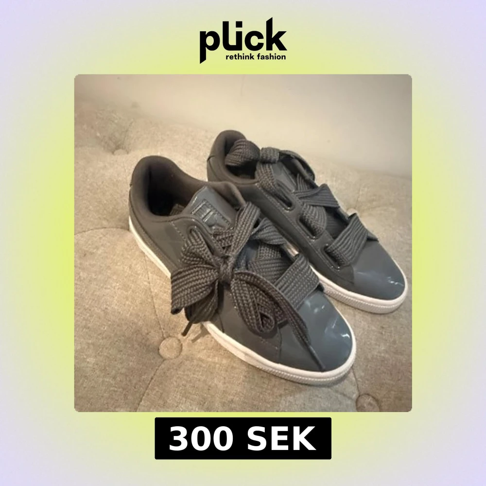 Snygga grå sneakers från Puma med glansig finish och breda, markerade snören. Köptes för 600, säljer för 300. Bra skick🥰