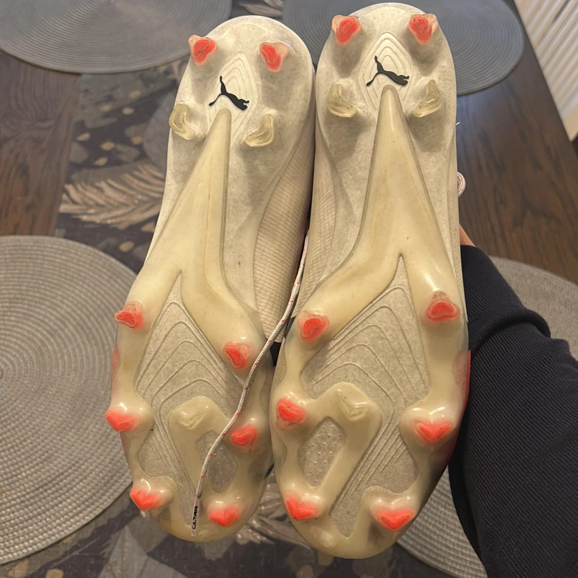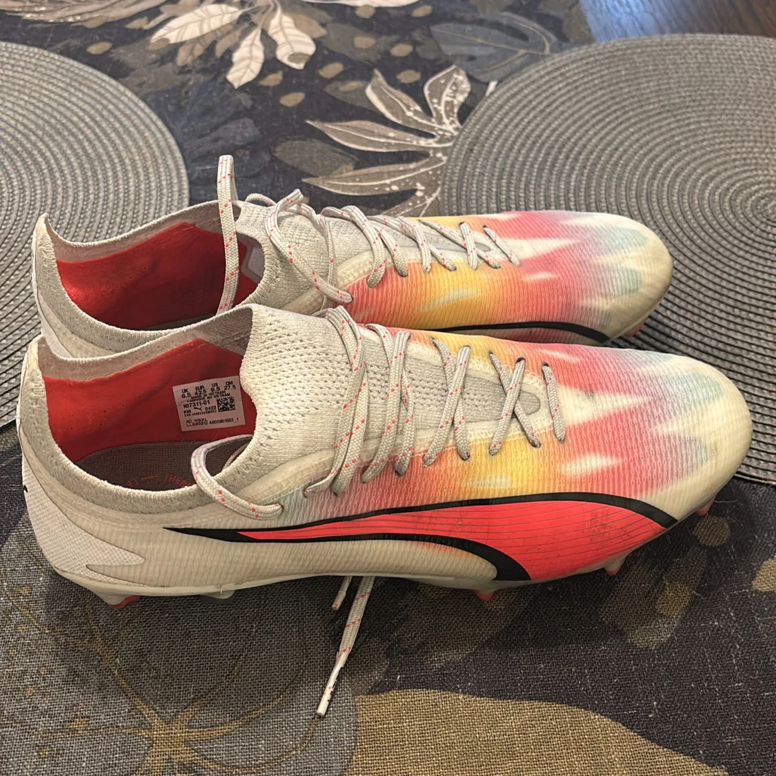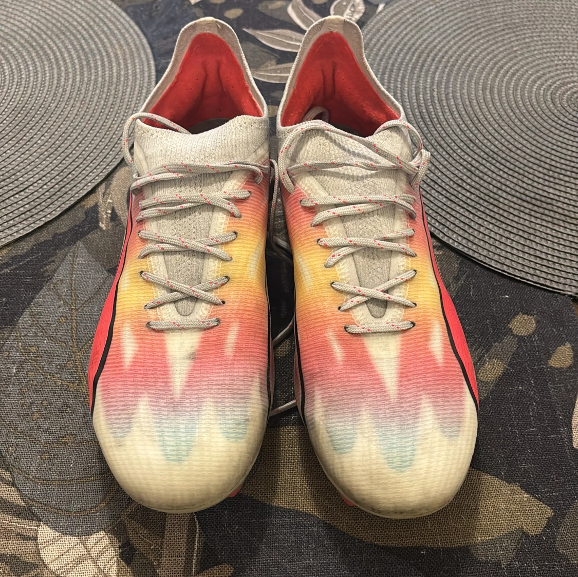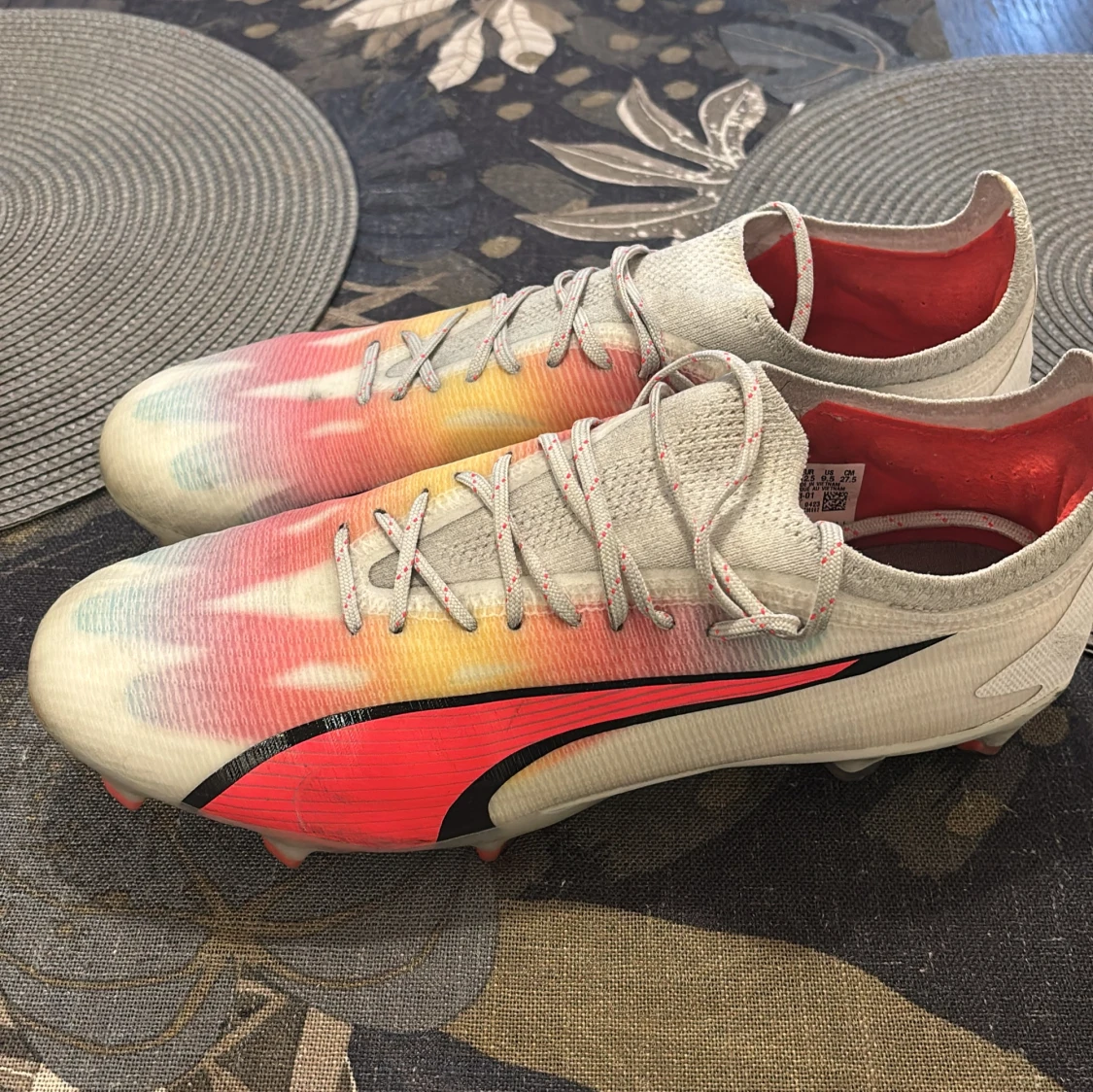 Säljer några snygga fotbollsskor från Puma i Fg/Ag. Skorna är använd några fåtal gånger men är fortfarande i mycket bra skick. Storlek 42.5.Köptes för 2500kr.