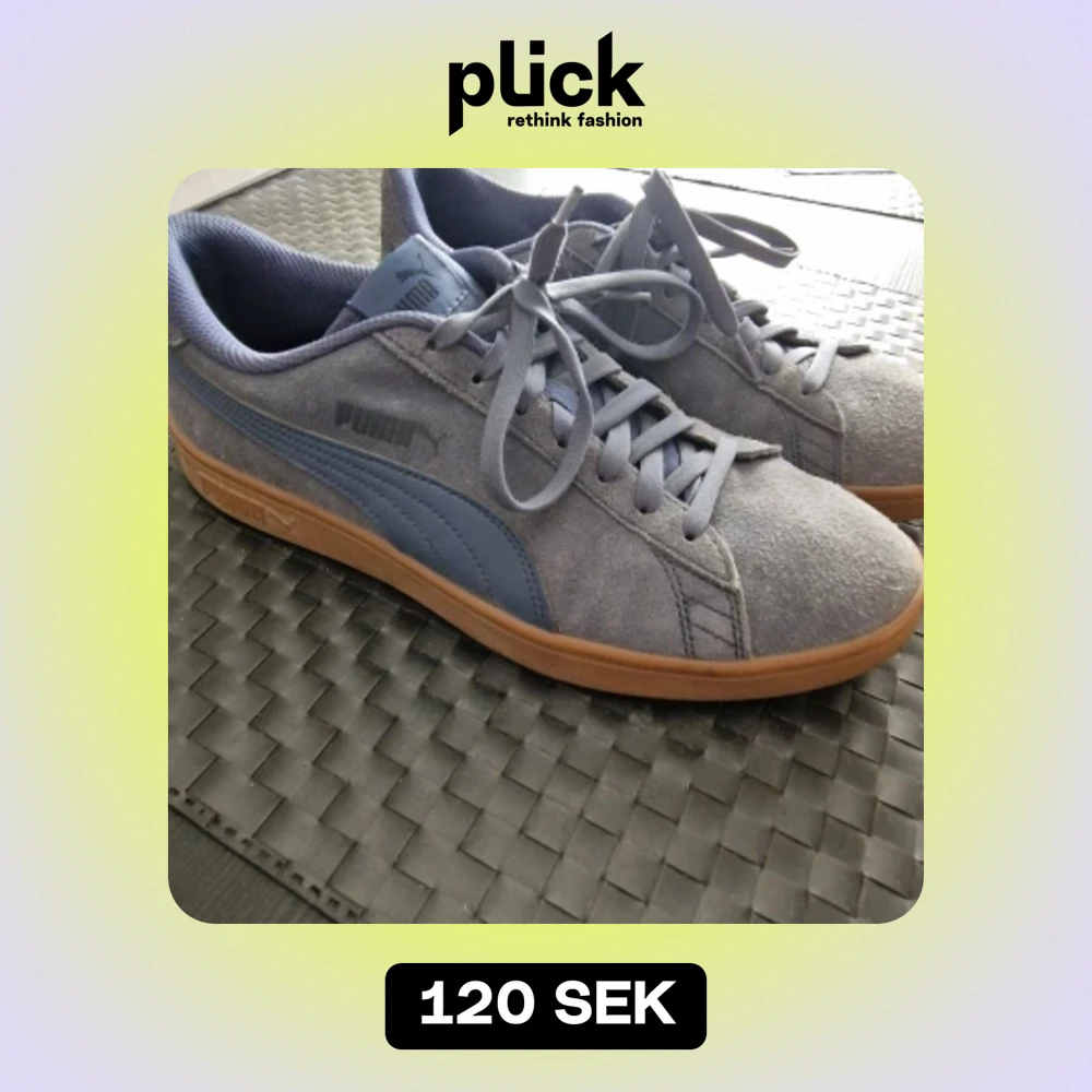 Puma Strl 44, blå mocka, rågummisula för användning inomhus.