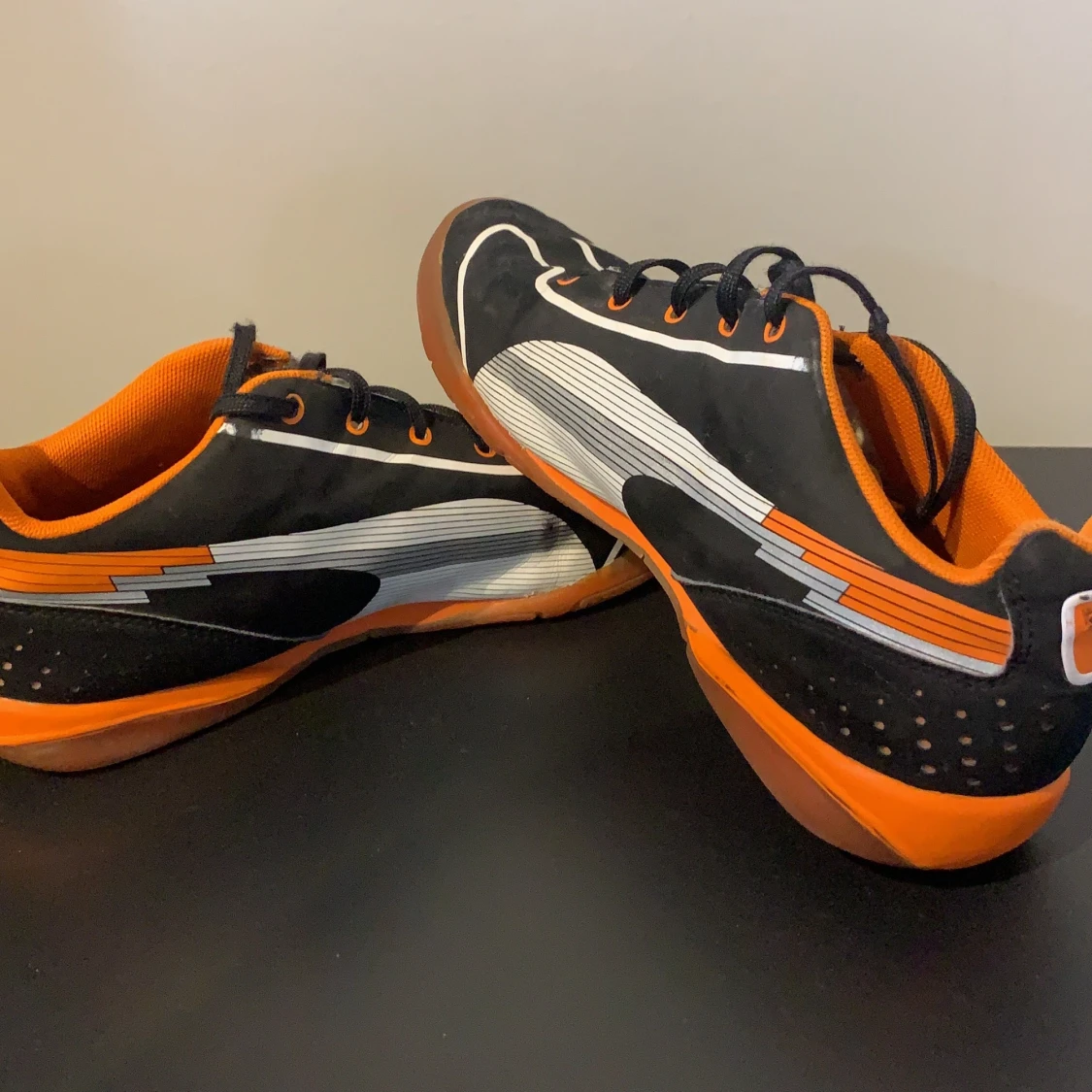 Orange/svarta inomhusskor från Puma. Unisex sko i strl 38 :)