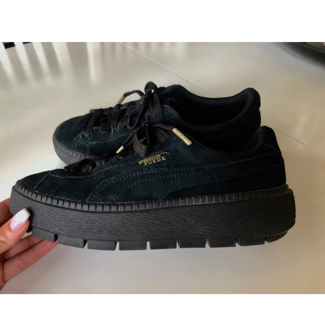 Svarta sneakers från puma i äkta läder. Guldiga detaljer. Köpt för 1199kr. Använda fåtal gånger, i fint skick.