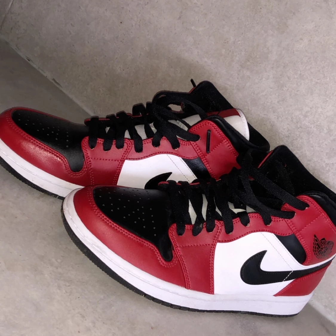 Tjena! Jag säljer nu mina riktigt snygga Jordan 1 Banned Mid Chicago Jag säljer skorna pågrund av att dom är i försmå storlek för mig och dom är i väldigt fin skick som ni kan se. Det är storlek 41. Om du är intresserad så är de bara att kontakta mig här på Plick😊