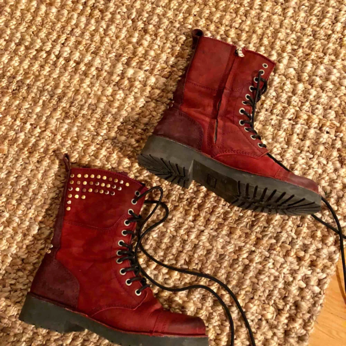 Röda skinnkängor från Wrangler, grymt sköna och fantastisk kvalité. Använda en gång, säljes endast pga. Inte min stil längre.