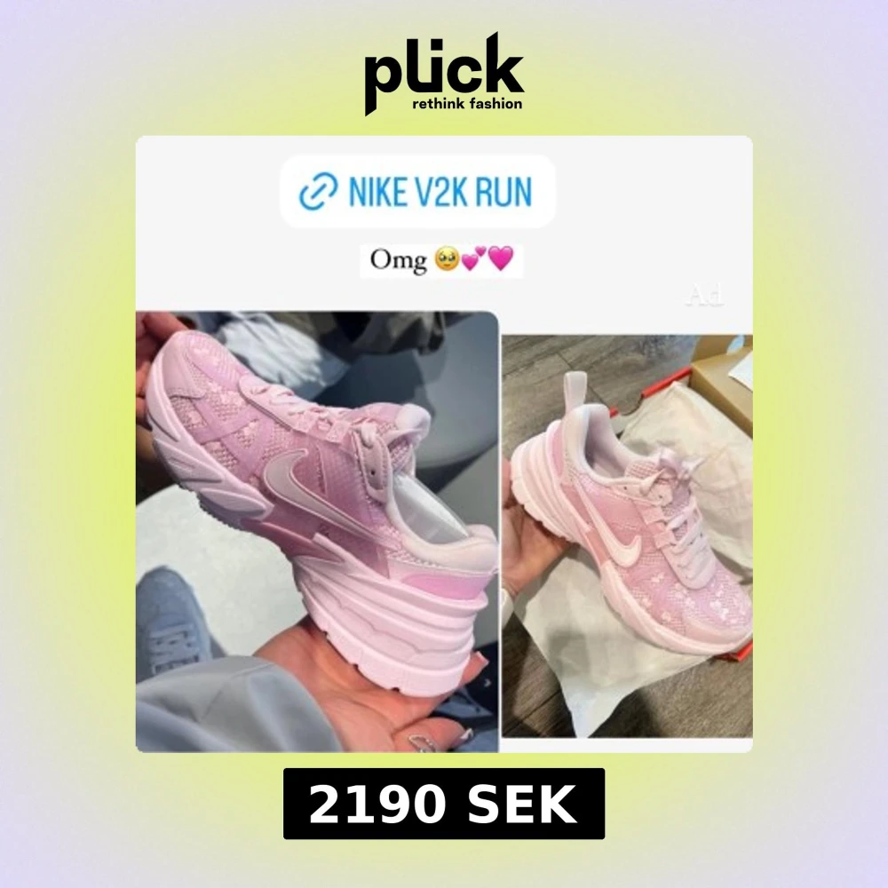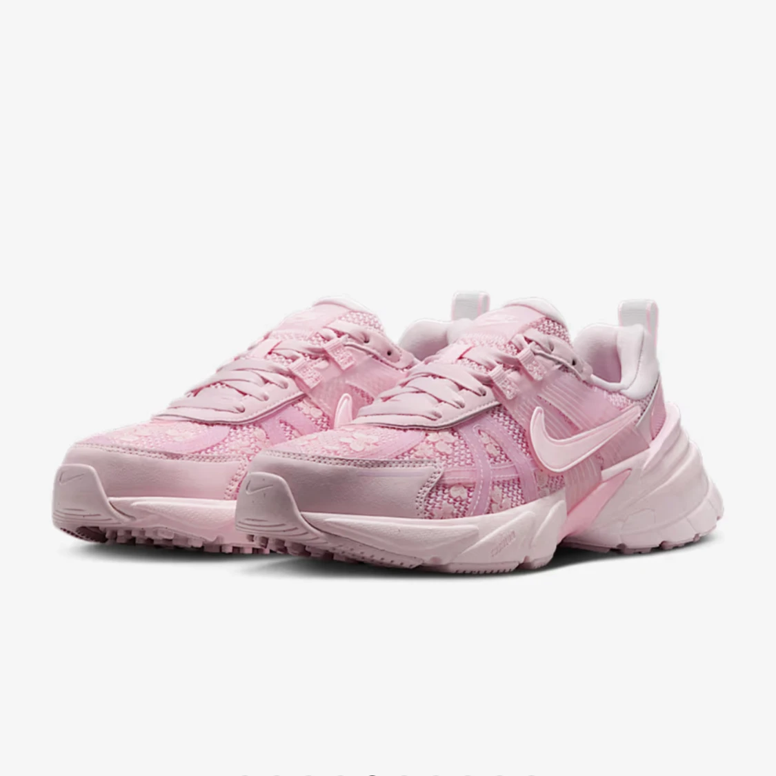Nike V2K Run sneakers i slutsåld limited edition i ljusrosa färg med blommigt mönster på mesh-ytan. Skorna har en chunky sula, vita swoosh-loggor och snörning. Perfekt för dig som vill sticka ut med en söt och sportig vibe. Materialmix av syntet och mesh för extra komfort.