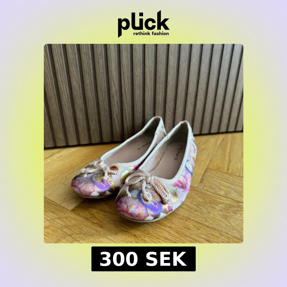 Ballerina från Tamaris med vackert blommigt mönster🌸 Skorna har en rosett framtill och rund tå, använd endast fåtal gånger! Storlek 38