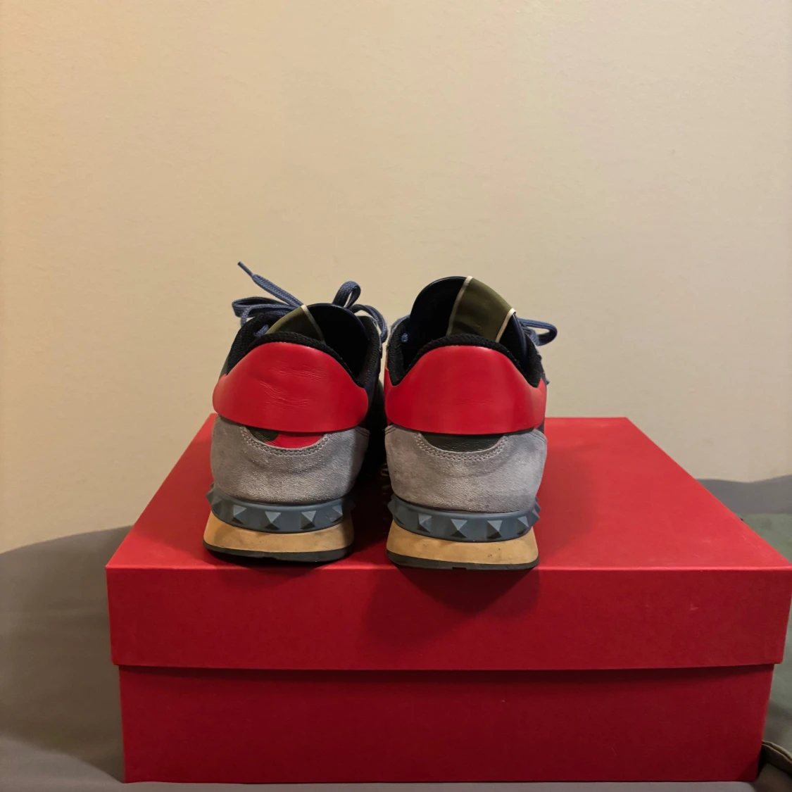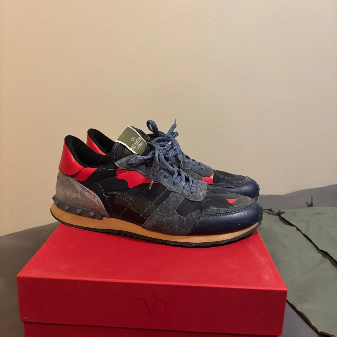 Säljer ett par Valentino Rockrunner sneakers i blått och rött med grå detaljer. Med låda och dustbag inkluderat. Denna modell med denna färg är sällsynt och finns inte alls att köpa längre. Skorna är i superskick och har tyvärr helt enkelt inte fått någon användning förutom från när jag köpte dom i en kort period. Skorna är i storlek 45 och jag kan skicka fler bilder vid behov. Tack!