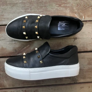 Skor från Bille Bi i jätte bra skick, använda ett fåtal gånger och kommer inte längre till användning! Dom är i svart skinn med nitar och en högre vit sula. Storlek 38 men lite stora i storleken så passar även 39. Köpta på NK