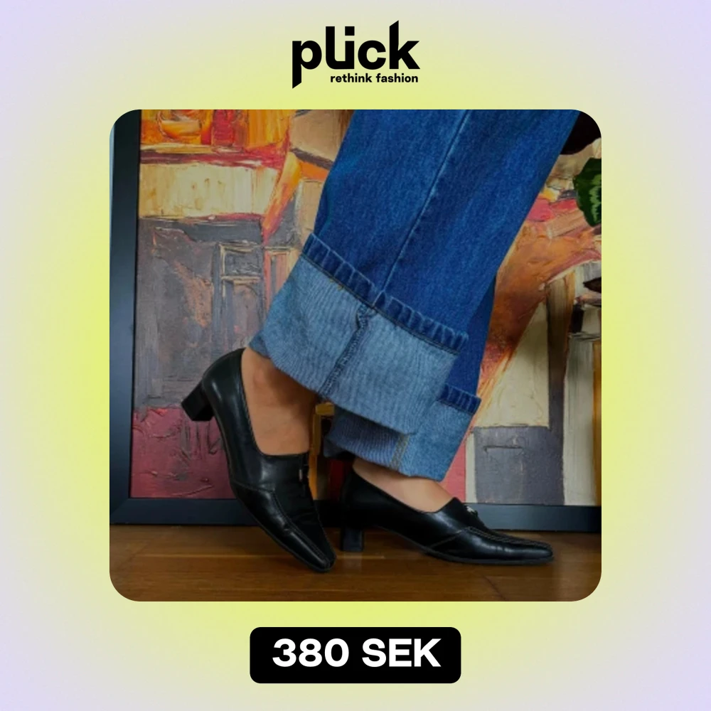 Svarta loafers med klack - Snygga svarta loafers i skinn med robust klack och dekorativa spännen. Perfekta för en stilren look med en touch av elegans. Passar bra till både jeans och klänning. Passar både en 38a och 39a!! Använd fåtal gånger.