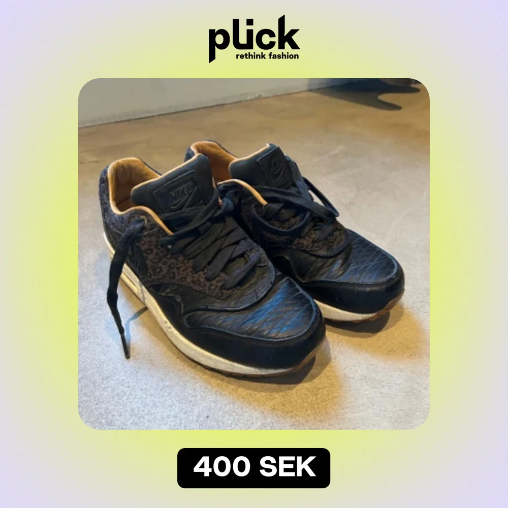 Ett par djuriga Nike Air med leopard mönster och mönstrat svart läder.