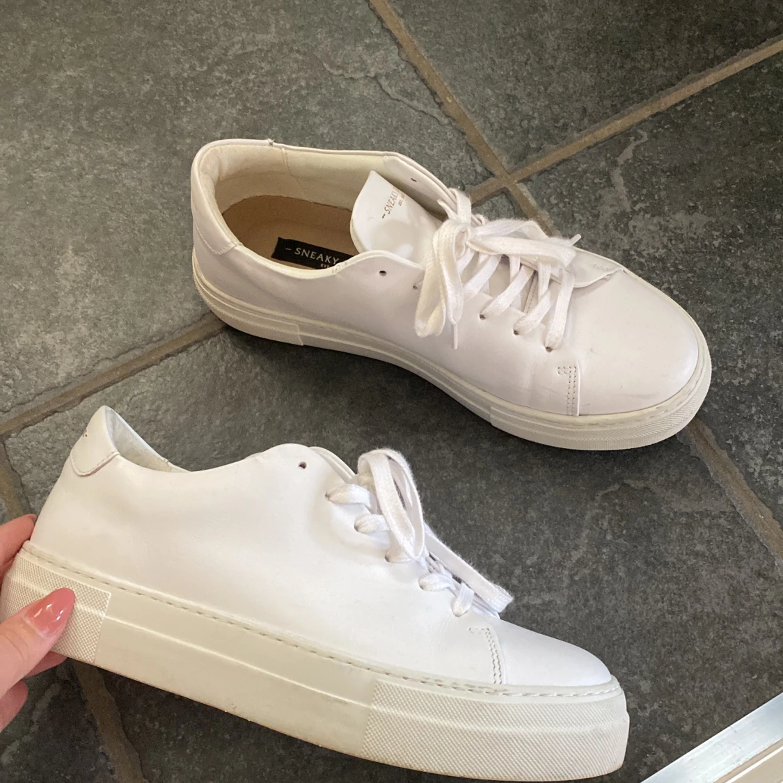 Tänkte sälja dessa vita sneakers från sneaky Steve då jag använder andra mer! Köpta innan sommaren men bara använda ca. 4 gånger, så i nyskick! Köpta för 1500kr