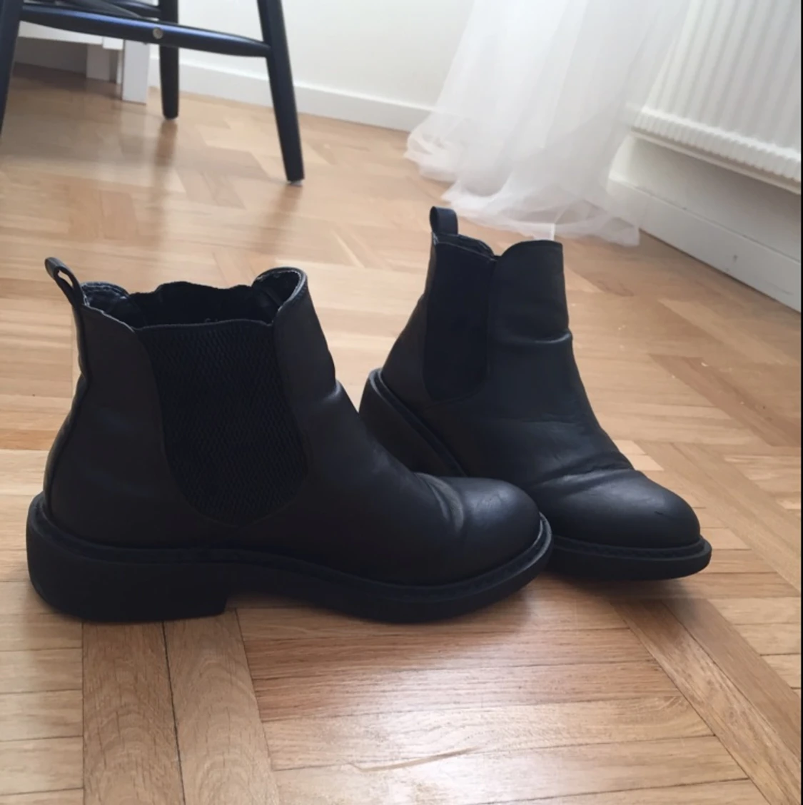 Svarta läder fold-over stövlar - Stövlarna är i mycket bra skick, har varit väl omhändertagna och är tillverkade utav hög kvalitet. Stövlarna har använts 3 gånger och har väldigt få tecken på användning.