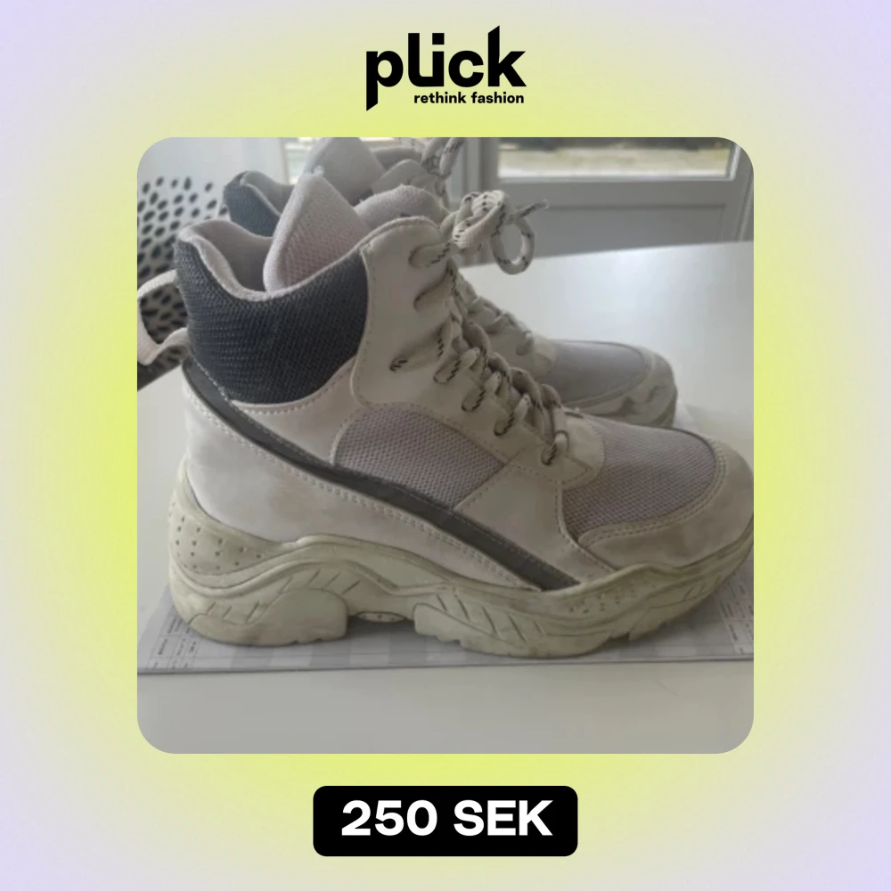 Ett par sneakers som har använts ett antal gånger, har inte använts så mycket pga storlek.
