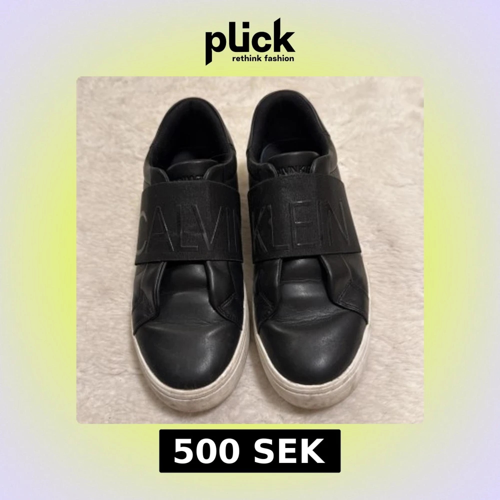 Ursnygga Calvin Klein sneakers som går att ha till alla looks! Sparsamt använd med endast smuts på sula som går att tvätta av. Frakt inkluderat i priset!