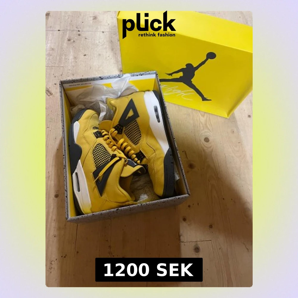 Säljer ett par Nike Air Jordan 4 Retro Lightning i stark gul mocka med svarta och vita detaljer. Grymma sneakers för dig som vill sticka ut med färg och ikonisk design. Condition: 8/10 och box följer med!