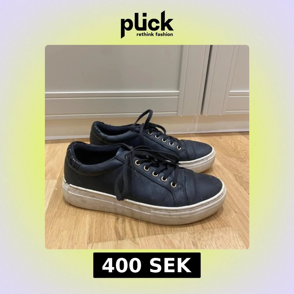 Svarta sneakers från Vagabond med chunky vit platåsula och guldfärgade öljetter. Skorna har snörning och en snygg detalj i blankt, krokopräglat material baktill. Tillverkade i skinn och syntet, perfekta för en trendig vardagslook.