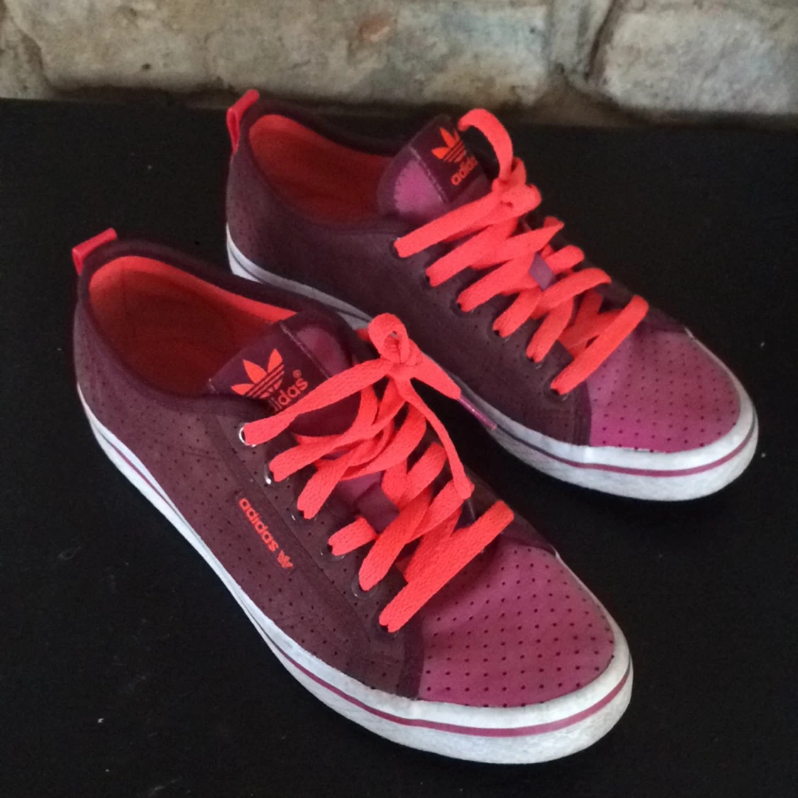 Valentino Rockstud sneakers vit/rosa - Säljer ett par Valentino Rockstud sneakers i vitt skinn med ljusrosa band och ikoniska nitar. Skorna har snörning, rund tå och platt sula. Snygg kontrast mellan det vita och rosa, samt coola detaljer med pyramidformade nitar både på sidan och runt hälen.