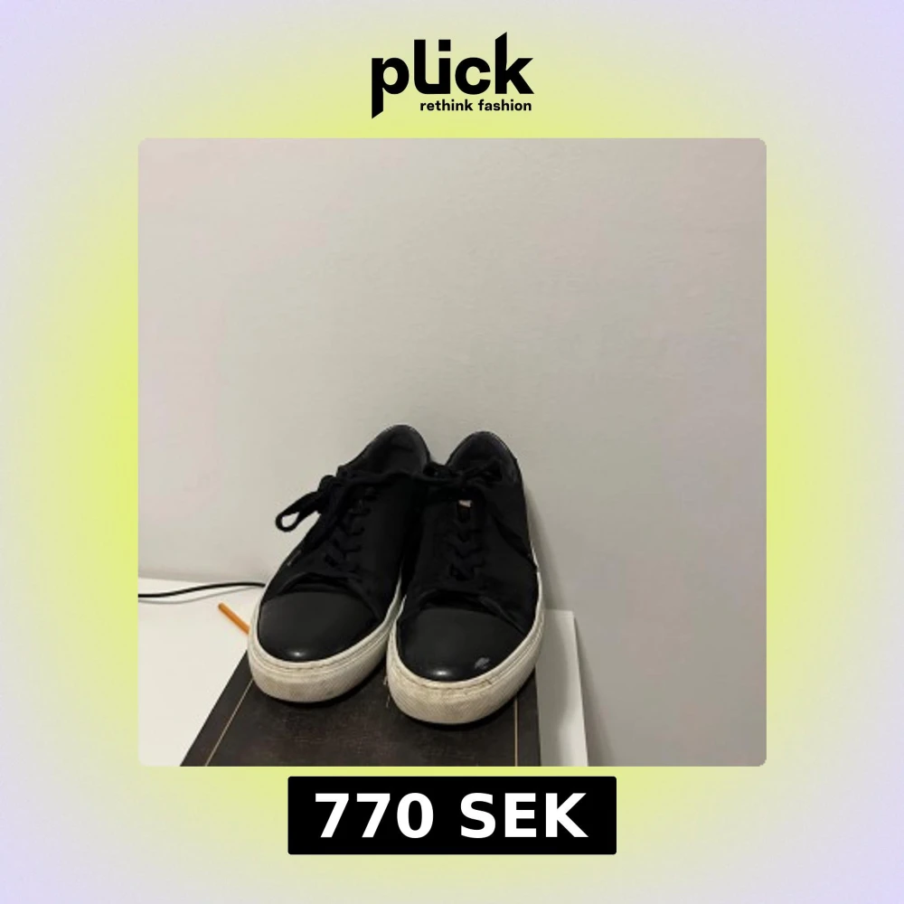 Snygga svarta sneakers från Sneaky Steve med vit sula och klassisk snörning. Perfekta för en stilren look. Skorna har en enkel och tidlös design som passar till många olika outfits. Har en lite defekt på glansen men går att fixa med lite lackfärg. Mvh Eldin.