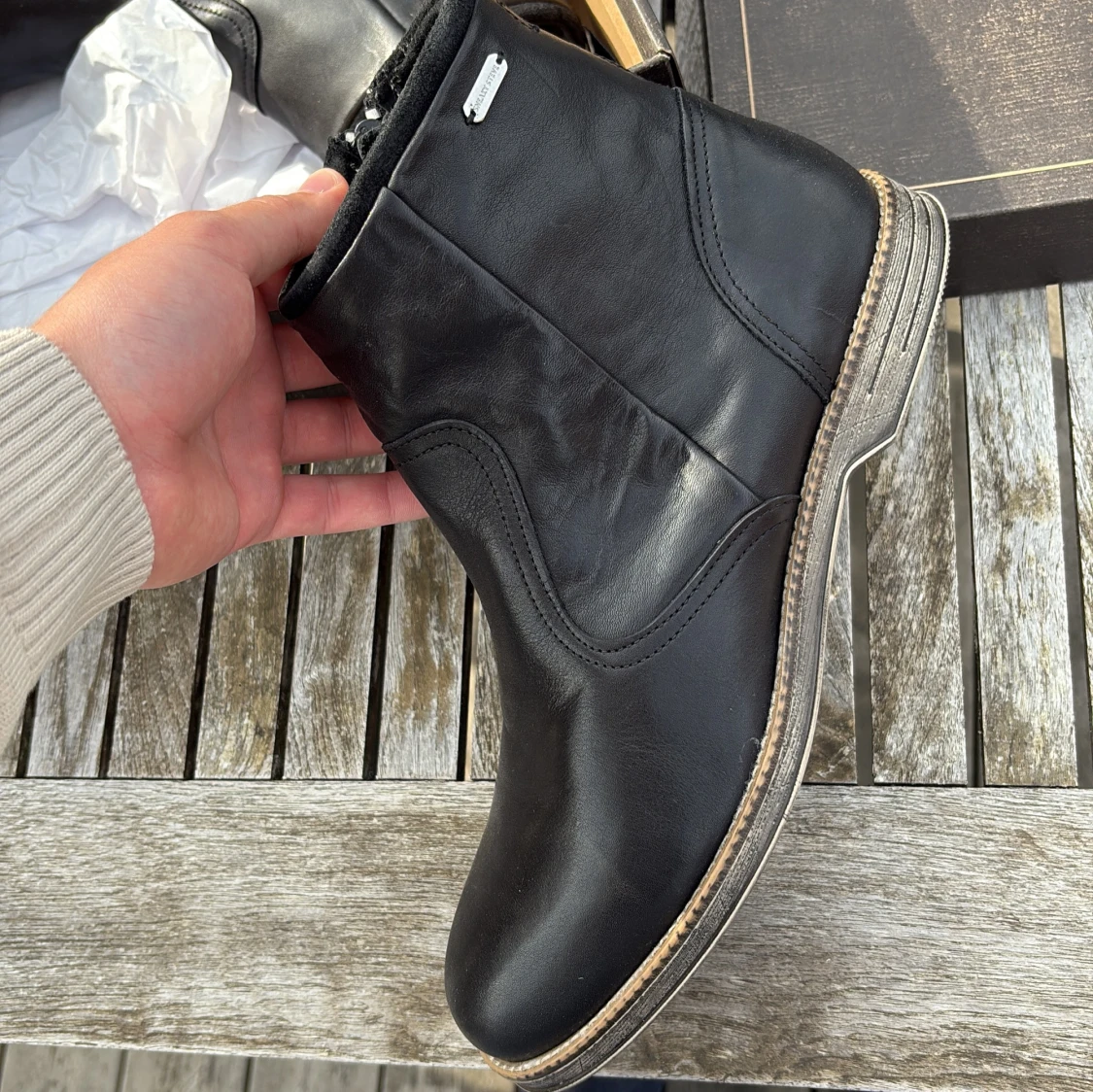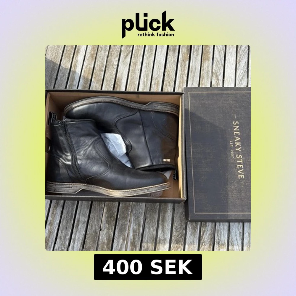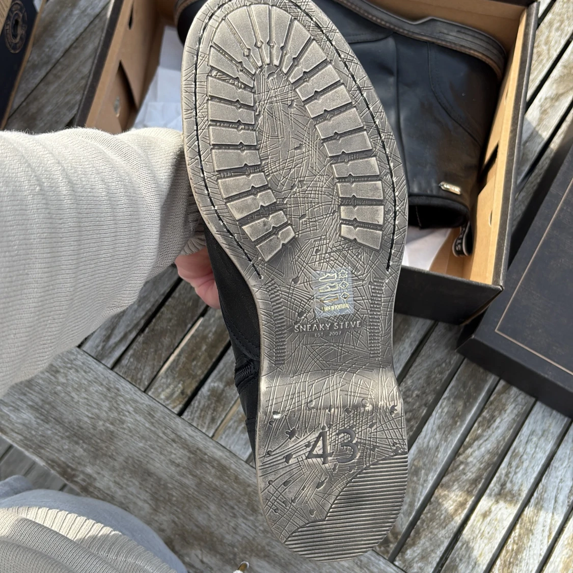 Säljer ett par svarta boots från Sneaky Steve i skinn med dragkedja på sidan. Snygg kontrastsöm runt sulan och klassisk design med rund tå. Perfekta för dig som gillar stilrena skor med lite edge.