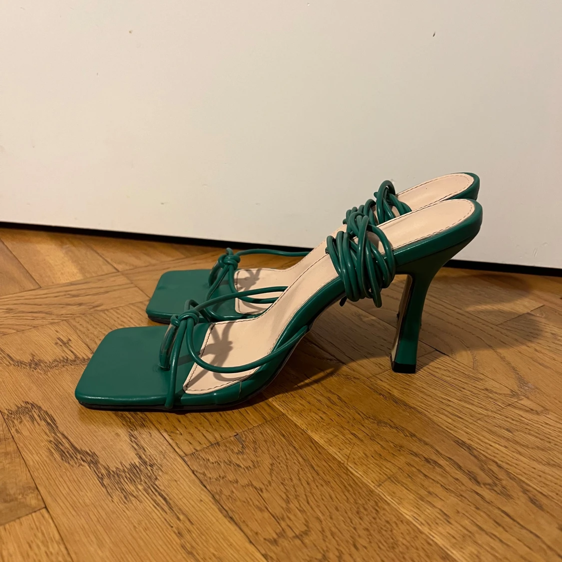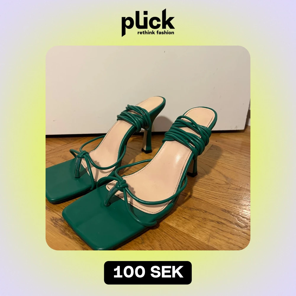 Snygga gröna klackskor med fyrkantig tå och elegant snörning runt vristen. De har en stilren design och är i bra skick, använda vid några enstaka tillfällen🤍