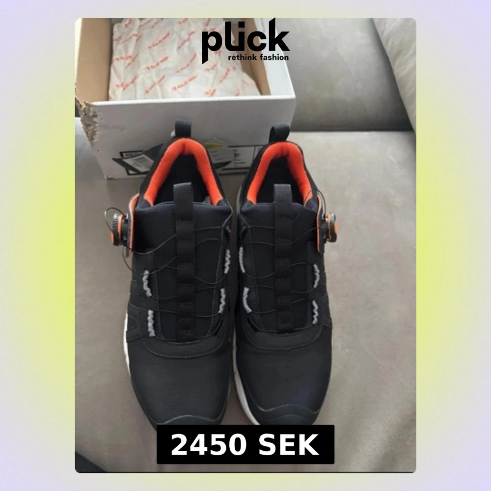 Svarta sneakers från Solid Gear med orange detaljer och vit sula. Skorna har BOA-snörning för enkel justering och en platt, mönstrad sula i orange. Insidan är fodrad med orange mesh och ovandelen är tillverkad i syntetmaterial. Perfekt för dig som gillar sportig stil och smarta funktioner. Se sista bild för lite information och en beskrivning om skorna.
