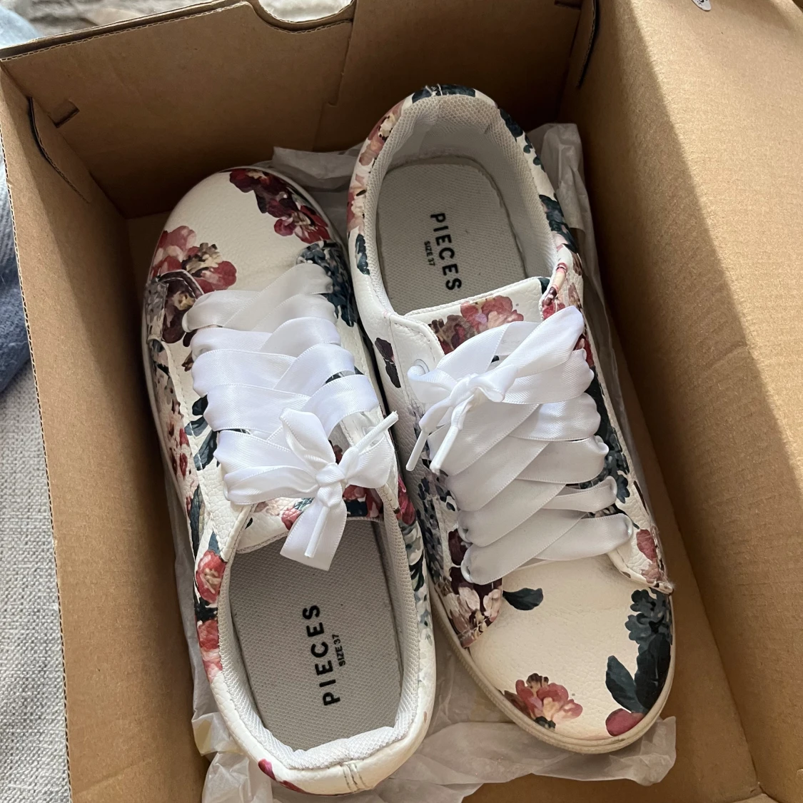 Söta skor med blommor och sidensnören från pieces, använda en gång storlek 37