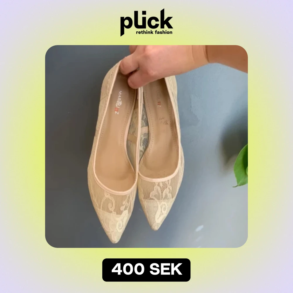 Spetsiga vita klackar i spets!! Så fina, vintage men god kvalitet! Storlek 41, rymliga och sköna