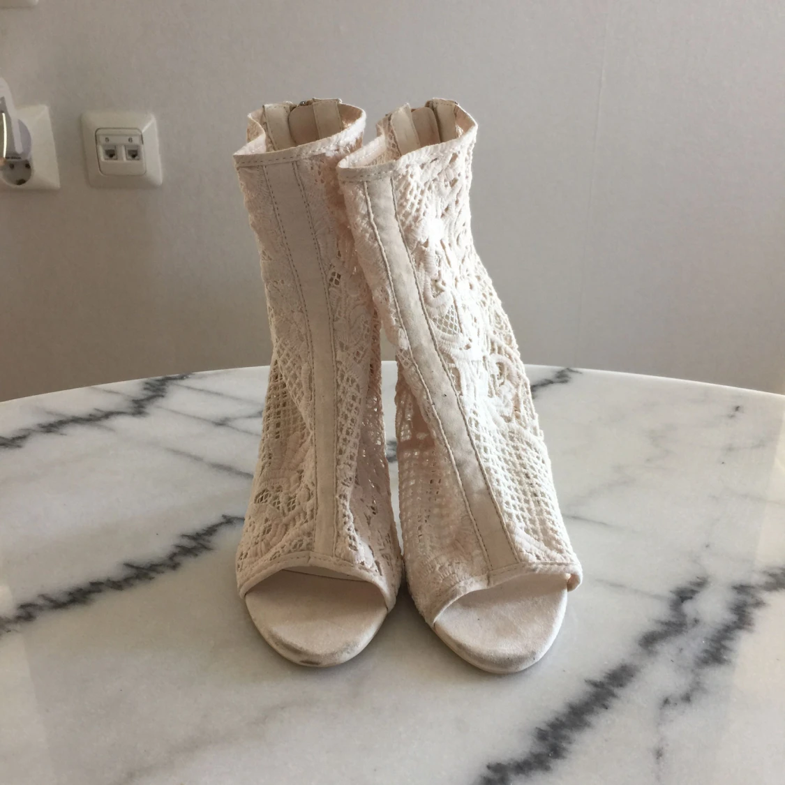 Ett par spets klackar i créme vit! Använda ett fåtal ggr! Fina o hela! Köparen står för frakten på 55kr