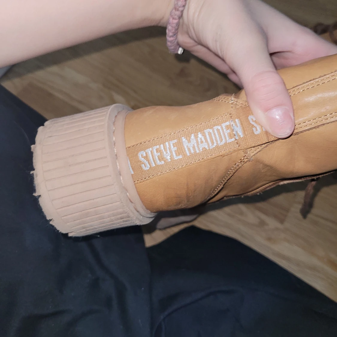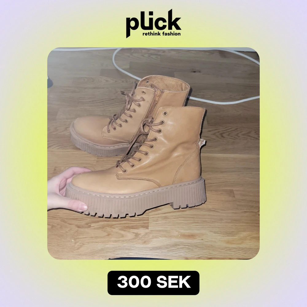 Säljer ett par snygga bruna boots från Steve Madden i skinn. De har en robust sula och snörning framtill, perfekt för höst och vinter. Bootsens stilrena design gör dem lätta att matcha med olika outfits. Provade dom en gång.