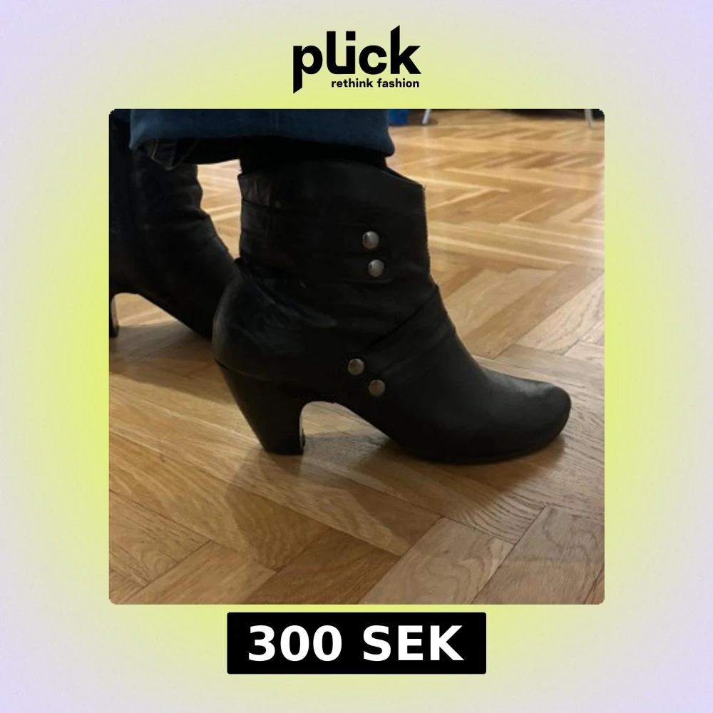 Snygga svarta boots i äkta läder med klack och dekorativa knappar på sidan. Perfekta för en stilren look. Nypris: 1200kr