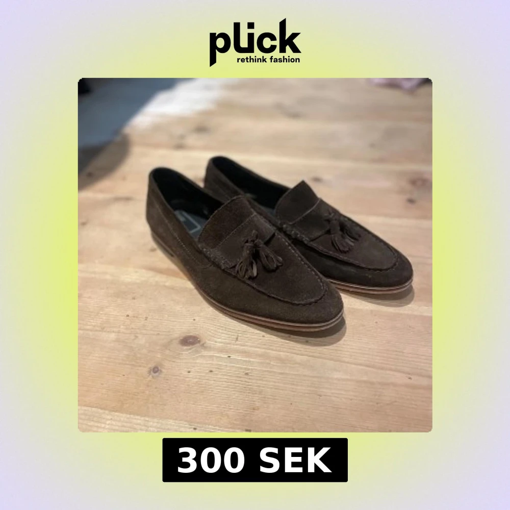 Snygga loafers i mörkbrun mocka med klassiska tofsar framtill. Skorna har en låg sula med en klack ✅ Perfekt för en stilren och chill look. Passar lika bra till jeans som till kostymbyxor. Bara att ställa frågor om det är nått !