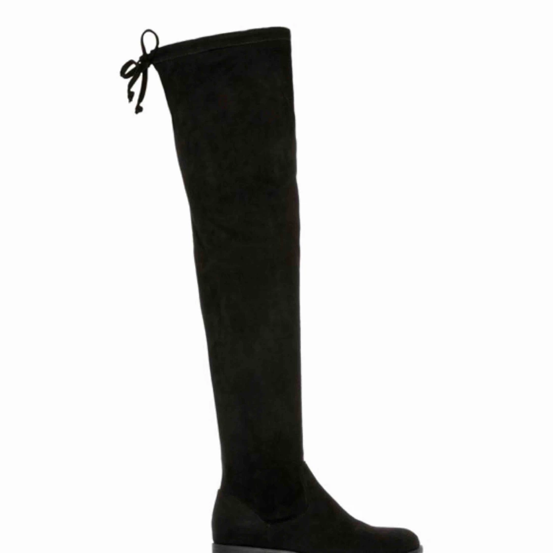 Snygg stretchstövel i svart textilmocka. Over-kneemodell, rund tå och funktionell dragkedja. Passar både till vardag och fest. | fint skick | nypris 599kr