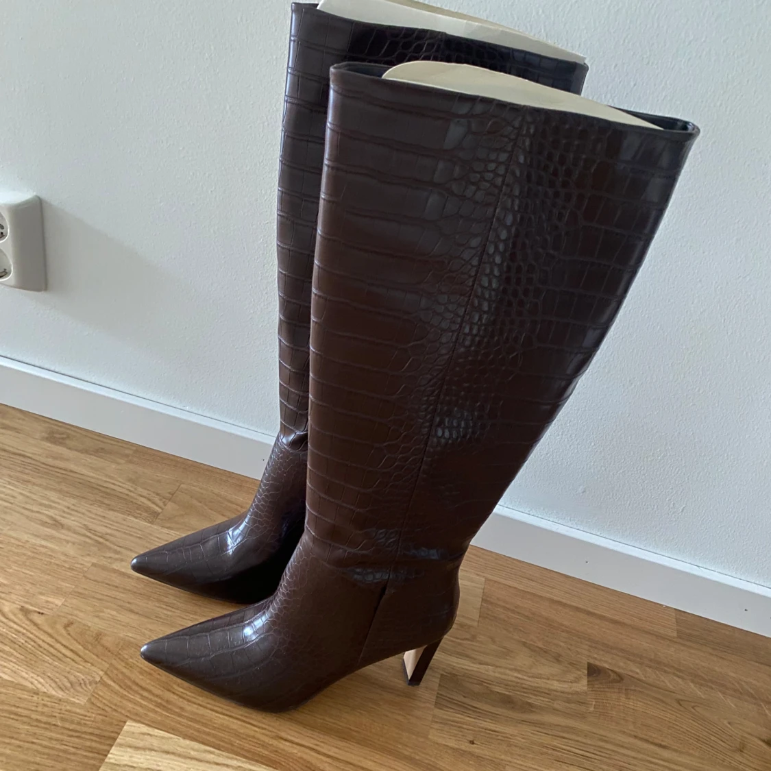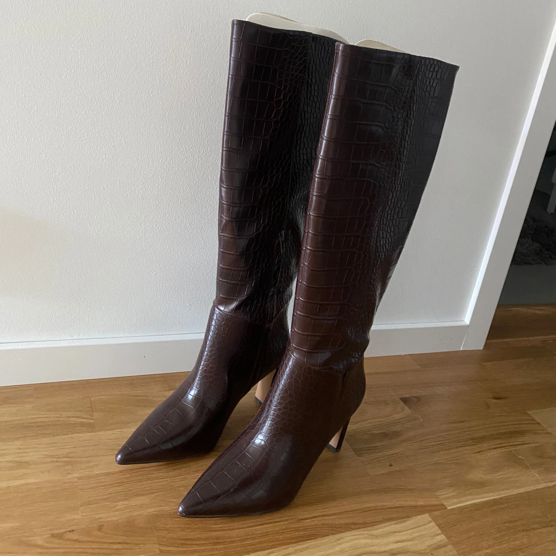 Säljer ett par bruna stövlar i krokodilmönster från NA-KD. Aldrig använda, endast provade. Storlek 38. Nypris 899