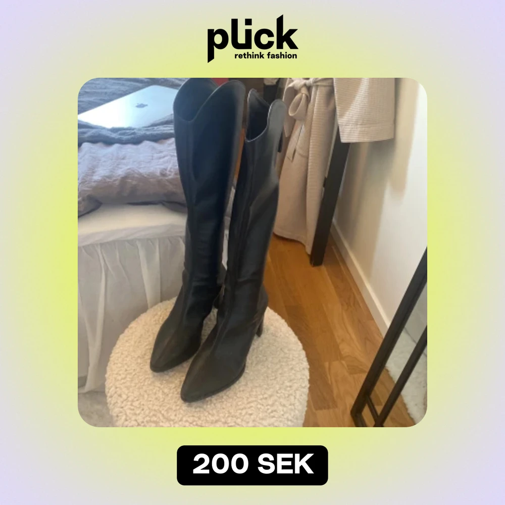 Superfina stövlar med klack. Storlek 36, skafthöjd ca 40cm, klackhöjd ca 6 cm. Använd fåtal gånger så något slitna precis i klacken, inget som syns.
