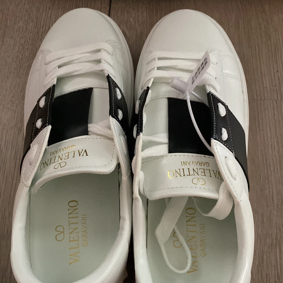 Säljer nu mina valentino opens som skulle varit mina sommarskor men tröttnade på dom och blev då ingen användning, skorna är endast testade och ingenting annat. Helt nyskick, vid snabbare affär kan jag vara generös med priset. Finns mycket replicor av dessa skor men dessa är äkta till hundra procent vilket jag kan bevisa genom kvitto när jag köpte dom. Vid frågor eller liknande kontakta mig, vänlig hälsning! OBS! Snörena är vita vid hålen eftersom jag snörade om dem, de svarta ytorna finns fof.