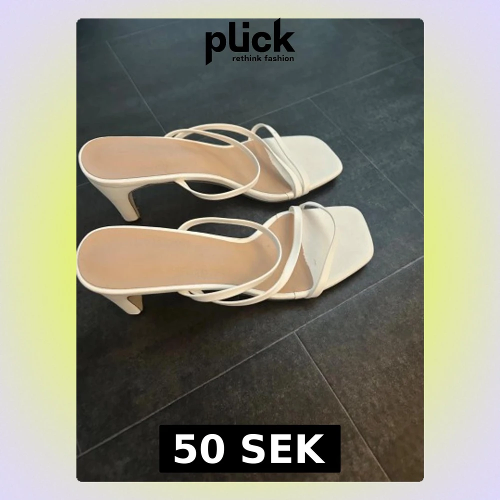 Säljer ett par stilrena vita sandaler med smala remmar och fyrkantig tå. Skorna har en elegant hög klack och öppen tå, vilket ger en modern vibe. Perfekta för dig som gillar minimalistisk design och vill ha något som sticker ut. Det är storlek 41, men passar mig som vanligtvis har 38/39.