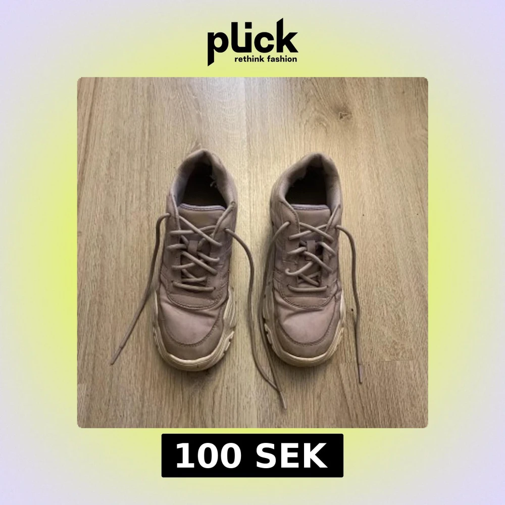 Chunky sneakers i lila med tjock vit sula, snörning och i storlek 35. Dom har några fläckar från användning som jag har försökt få bort, och om någon skulle köpa skorna så kommer jag göra rent dom ännu mer. + att dom har ett litet hål innuti som syns på sista bilden, men det syns ju inte när man har på sig skorna. Skriv om du har frågor o läs helst min bio innan du köper🫶🏻🫶🏻