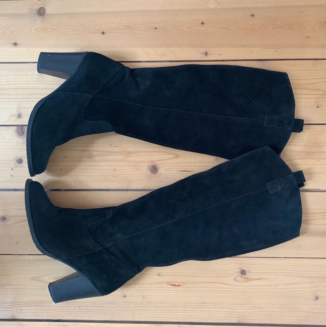 Sjukt fina mocka/läder stövlar i lite cowboyliknande modell. ⚡️⚡️Stövlarna slutar precis under knät. De är sparsamt använda och i bra skick, säljer då jag har flera liknande. Blir många intresserade startar jag budgivning (nypris ligger runt 2000kr)🌙