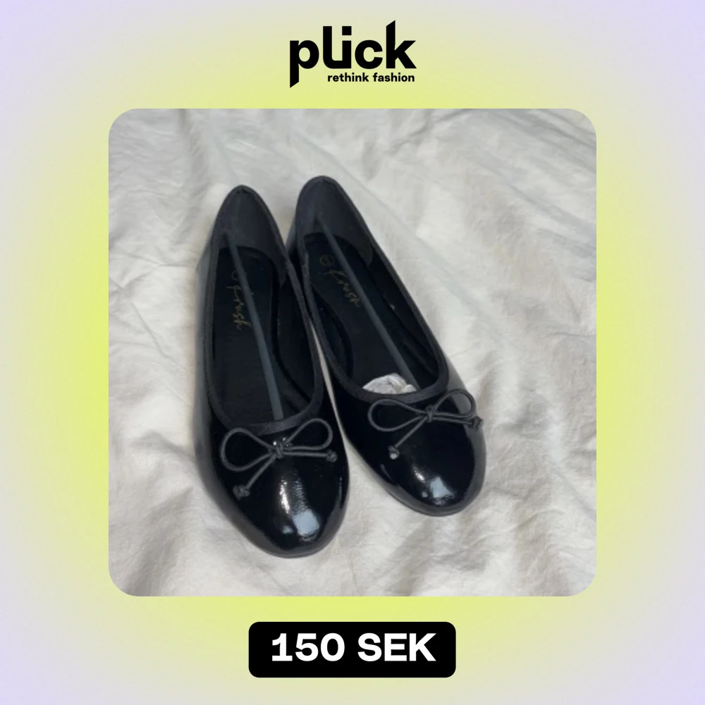 Jätte fina svarta glansiga ballerina skor. De är helt nya, jag råkade beställa två par darför säljs de🫠