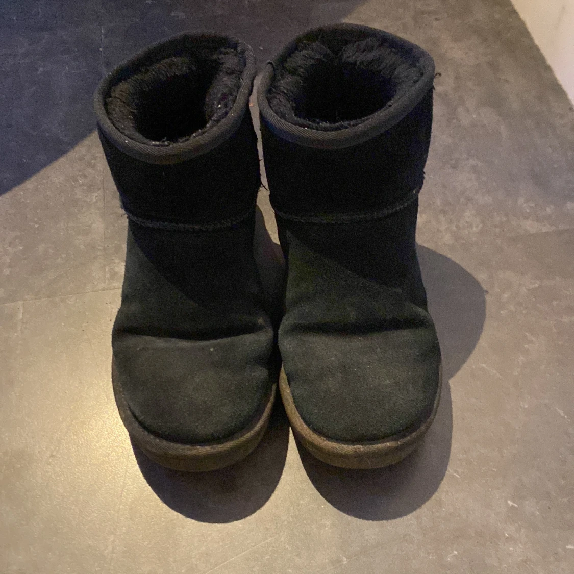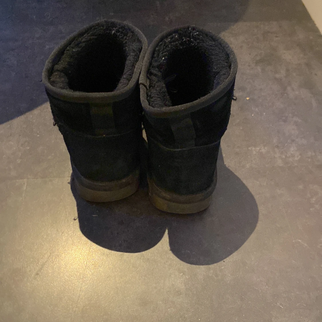 Mysiga svarta boots i mocka med mjukt foder på insidan och grov sula. Skorna har rund tå och platt sula, perfekta för kalla dagar. Klassisk design som funkar till det mesta och håller fötterna varma hela vintern.