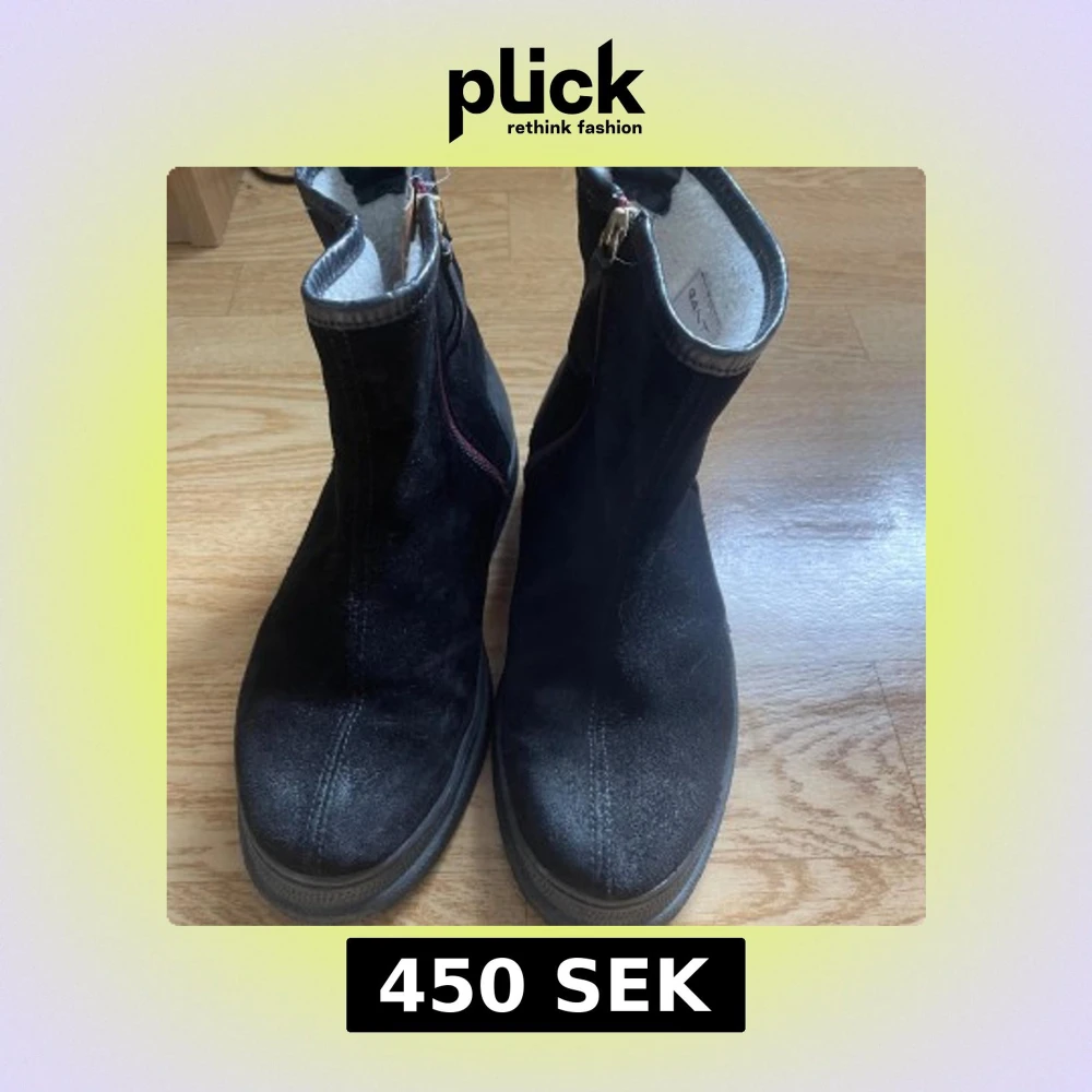 Svarta boots från Gant i mjuk mocka med dragkedja framtill och detaljer i skinn. Insidan är fodrad med ull för extra värme. Snygg, stilren design med rund tå och platt sula, perfekta för kyligare dagar.