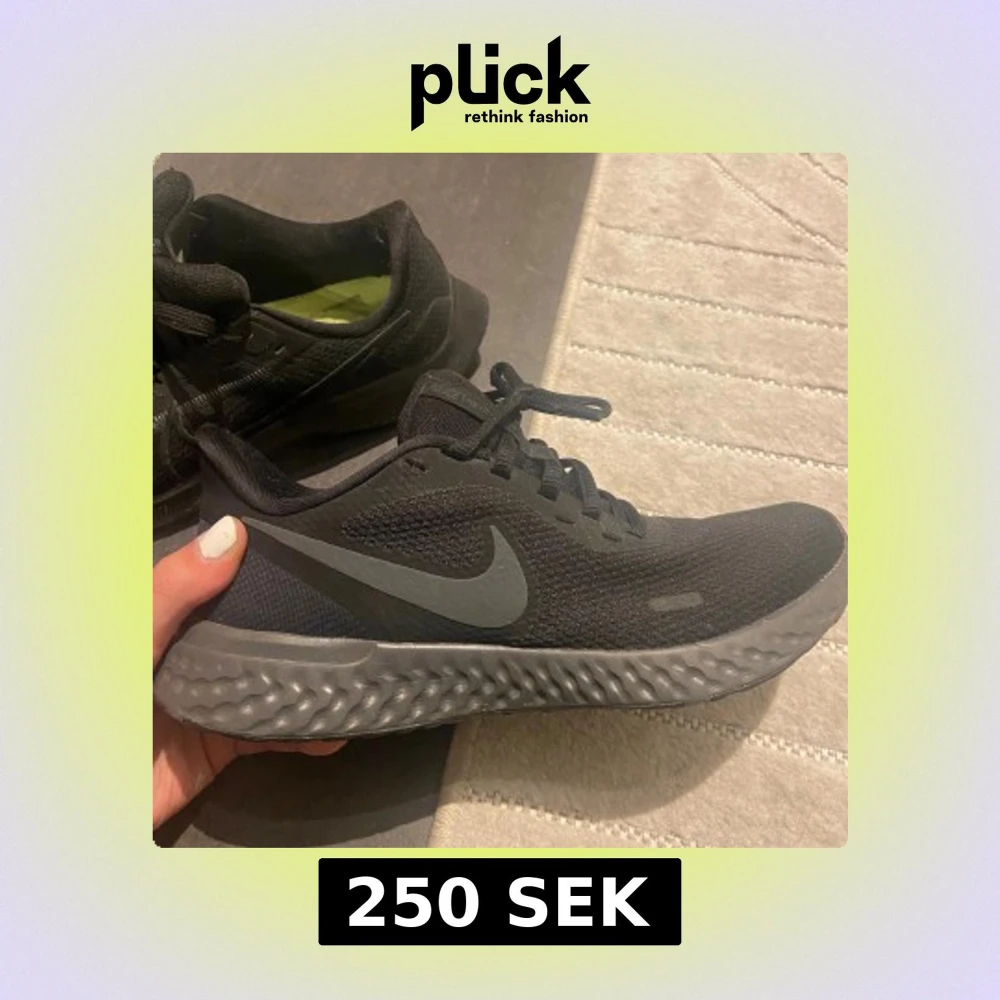 Svarta Nike React sneakers med grå sula och stort grått swoosh på sidan. Ovandelen är i mesh för bra andningsförmåga och skon har snörning.