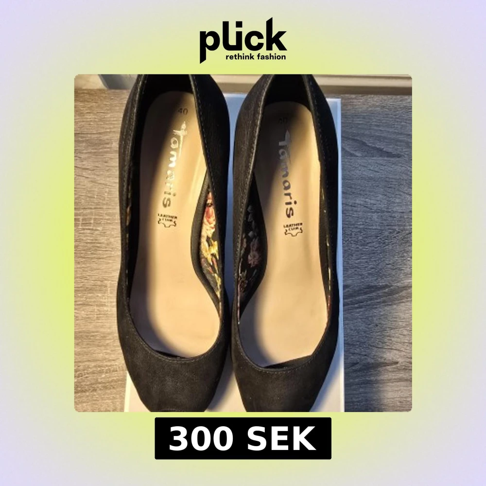 Snygga svarta pumps från Tamaris med blommigt foder på insidan. Skorna har rund tå, klack och är tillverkade i skinn. Perfekta för dig som vill ha en klassisk sko med en liten twist.