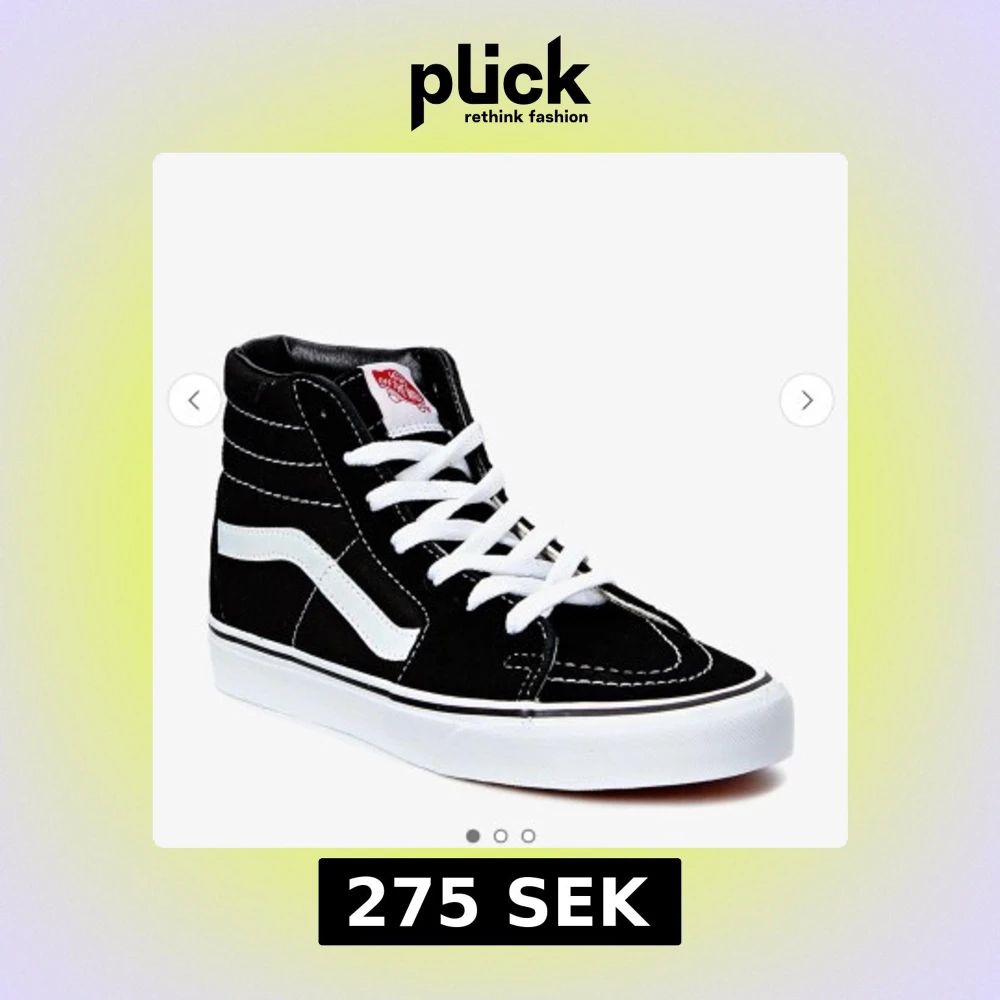 Klassiska svarta sneakers från Vans med hög modell och vit sula. Skorna har vita snören och den ikoniska vita sidostripen. Perfekta för en stilren och avslappnad look.