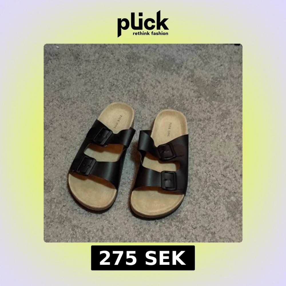 Svarta sandaler från Pier One storlek 41, i nyskick med två breda remmar i syntet och justerbara spännen. Fotbädden är beige och har en skön, anatomisk form. Perfekta för sommaren och riktigt chill stil.