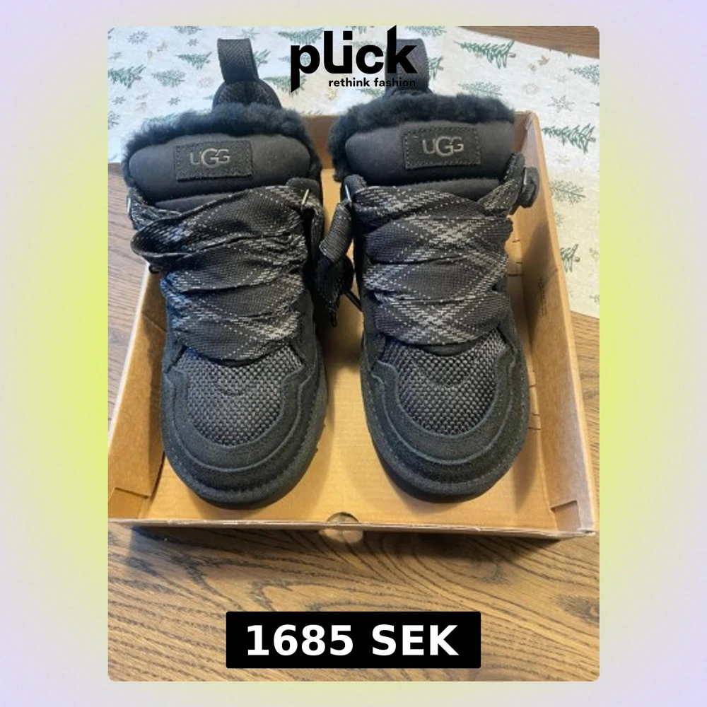 Säljer ett par svarta snygga UGG boots med grov platt sula och snörning. Skorna har ett fluffigt pälsfoder på insidan och detaljer i mocka och syntet på utsidan. Säljer då jag köpte en storlek för liten, aldrig använda. Det är bara att skriva om du har frågor 💗☺️nypris: 2499kr