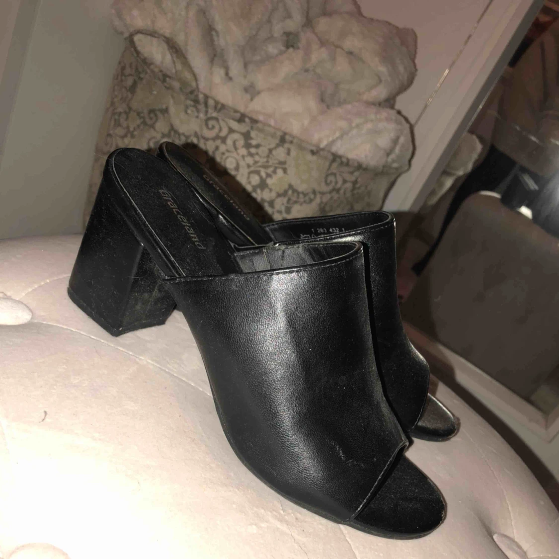 Klackar ifrån deichman. Använd 3-4 gånger. Bra skick!! Dammiga då dem bara stått ett tag;)