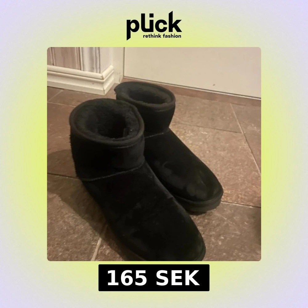 Mysiga svarta boots med rund tå och platt sula, tillverkade i mjuk mocka med fluffigt foder på insidan. Perfekta för kalla dagar och har en enkel, stilren design som passar till många outfits.