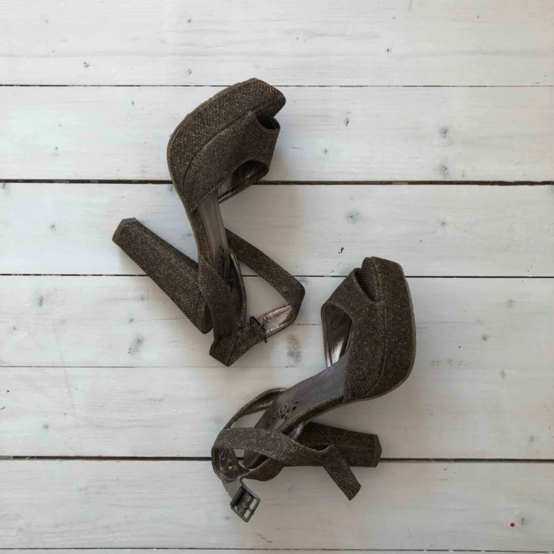 Guldglittriga högklackade skor, säljes pga lite för små för mig. Använda enstaka gånger, fint skick! Köparen betalar frakt, alt upphämtning i Gävle eller Uppsala!