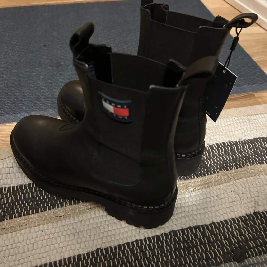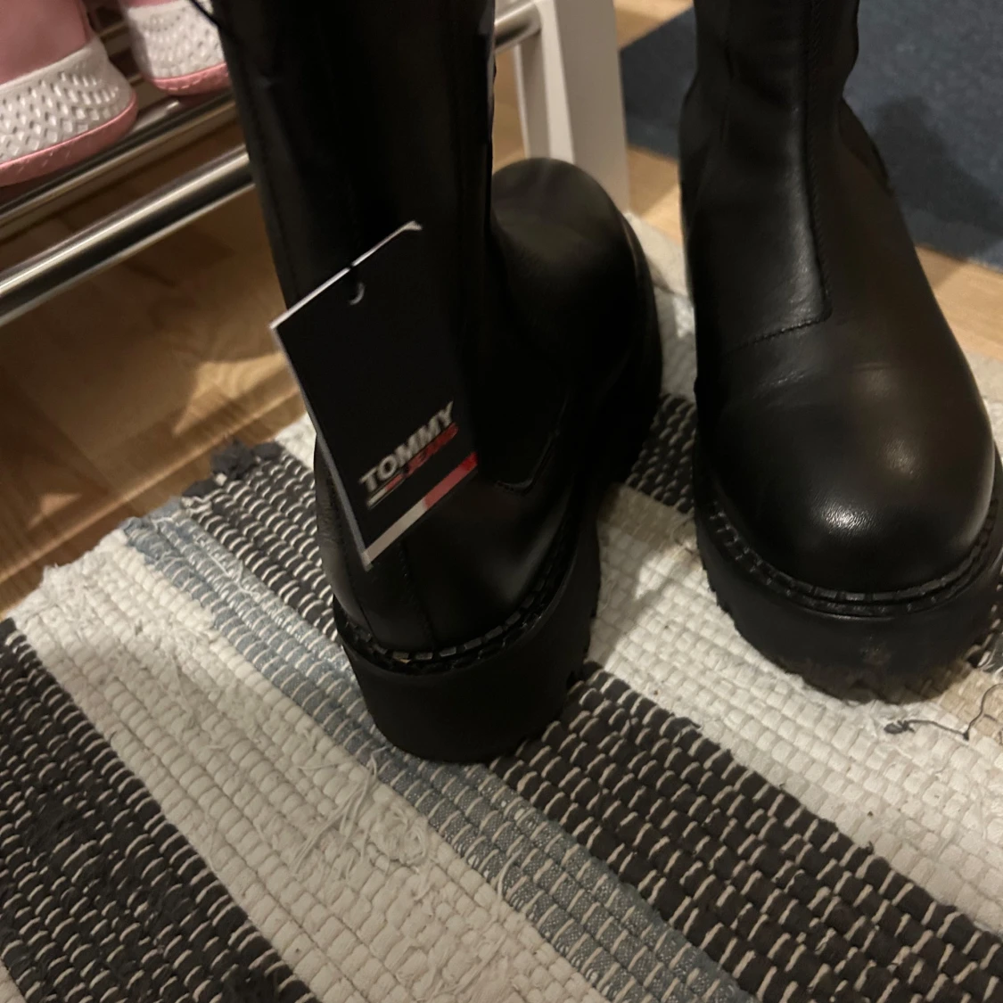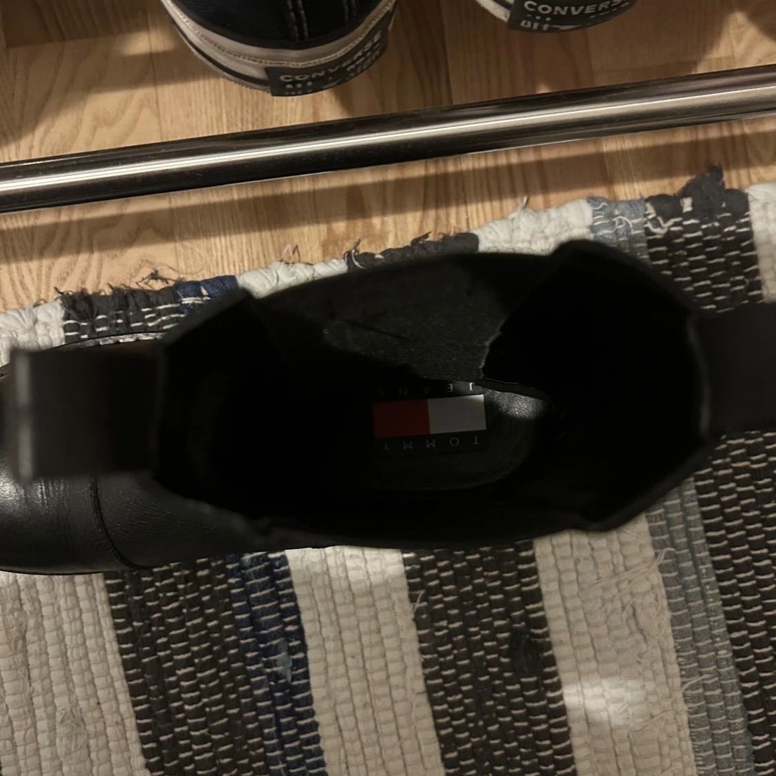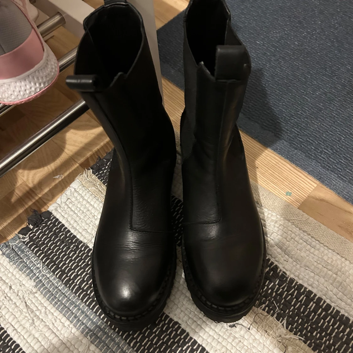 Helt nya skor som jag endast använt hemma för att försöka töja ut men det funka inte Dem är för små för mig. Det är storlek 39 jag tror det passar jätte bra till folk har smalare fötter. Jag tror att det är äkta skinn, osäker men det känns så iaf.