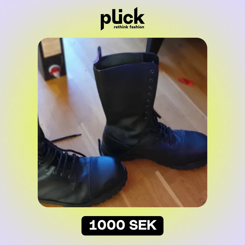 Nevermind 14 håls kängor med stålhetta. Aldrig använda! Står storlek 47 i skorna men sitter perfekt på mig som har 45. Storlek 45! Skick 9/10 Tror jag köpte dom för ca 2000 kr Finns i gävle